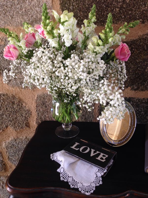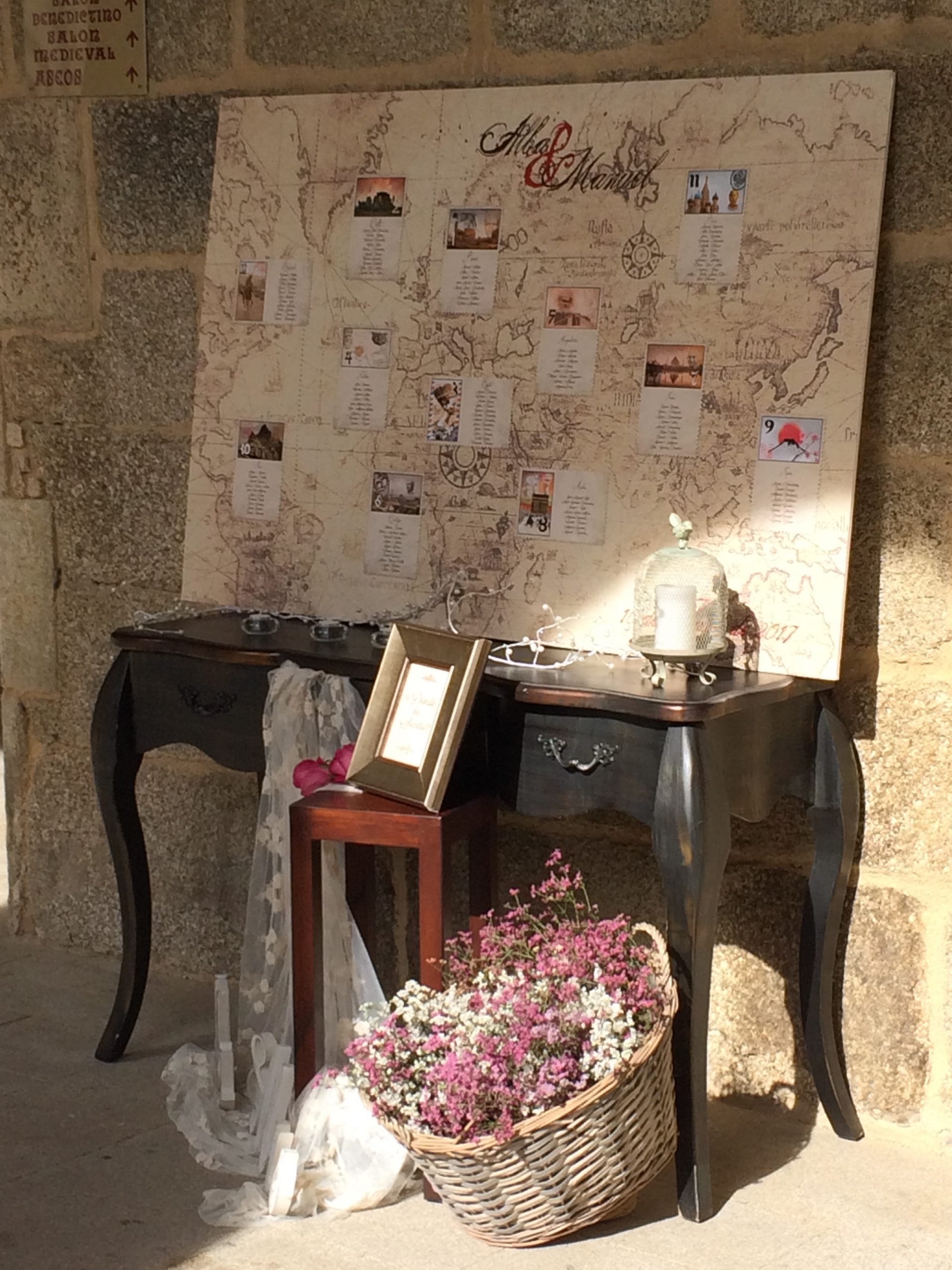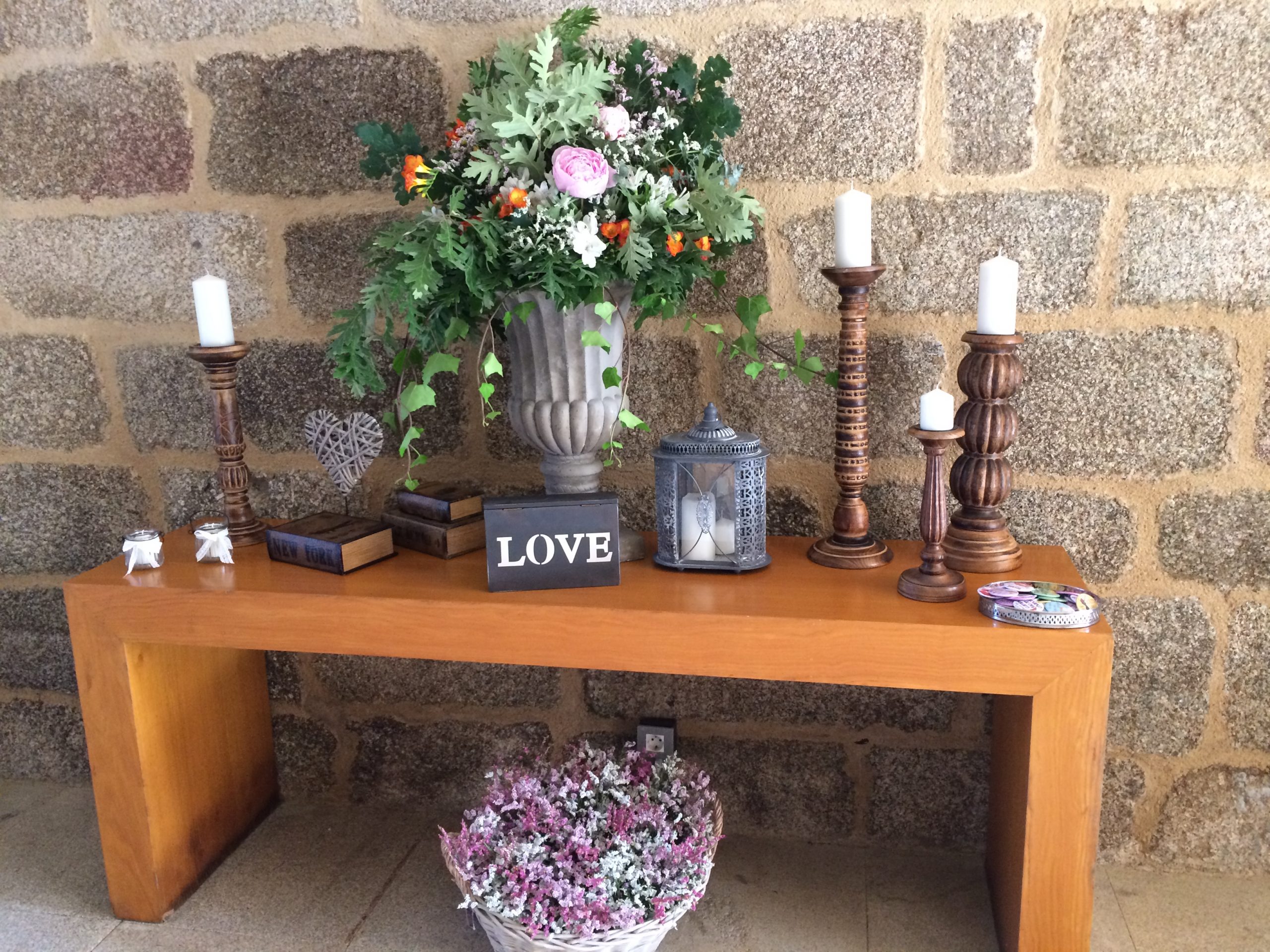 Mesa antigua con flores y detalles clásicos. Nos encanta!